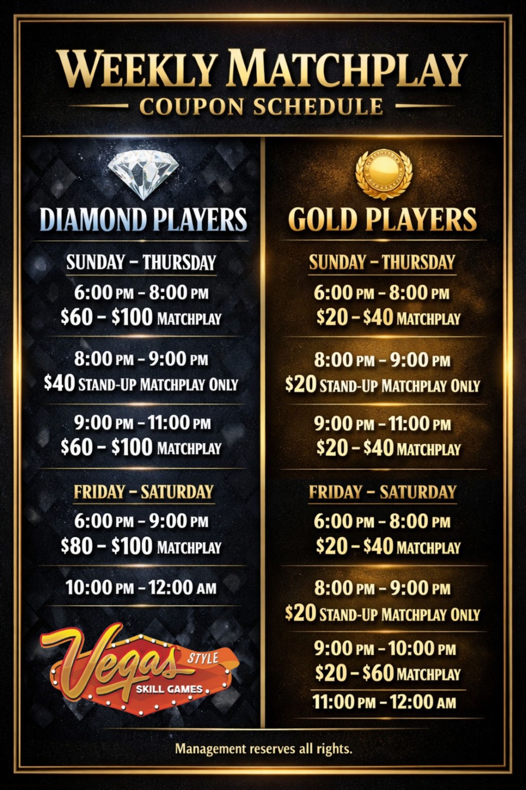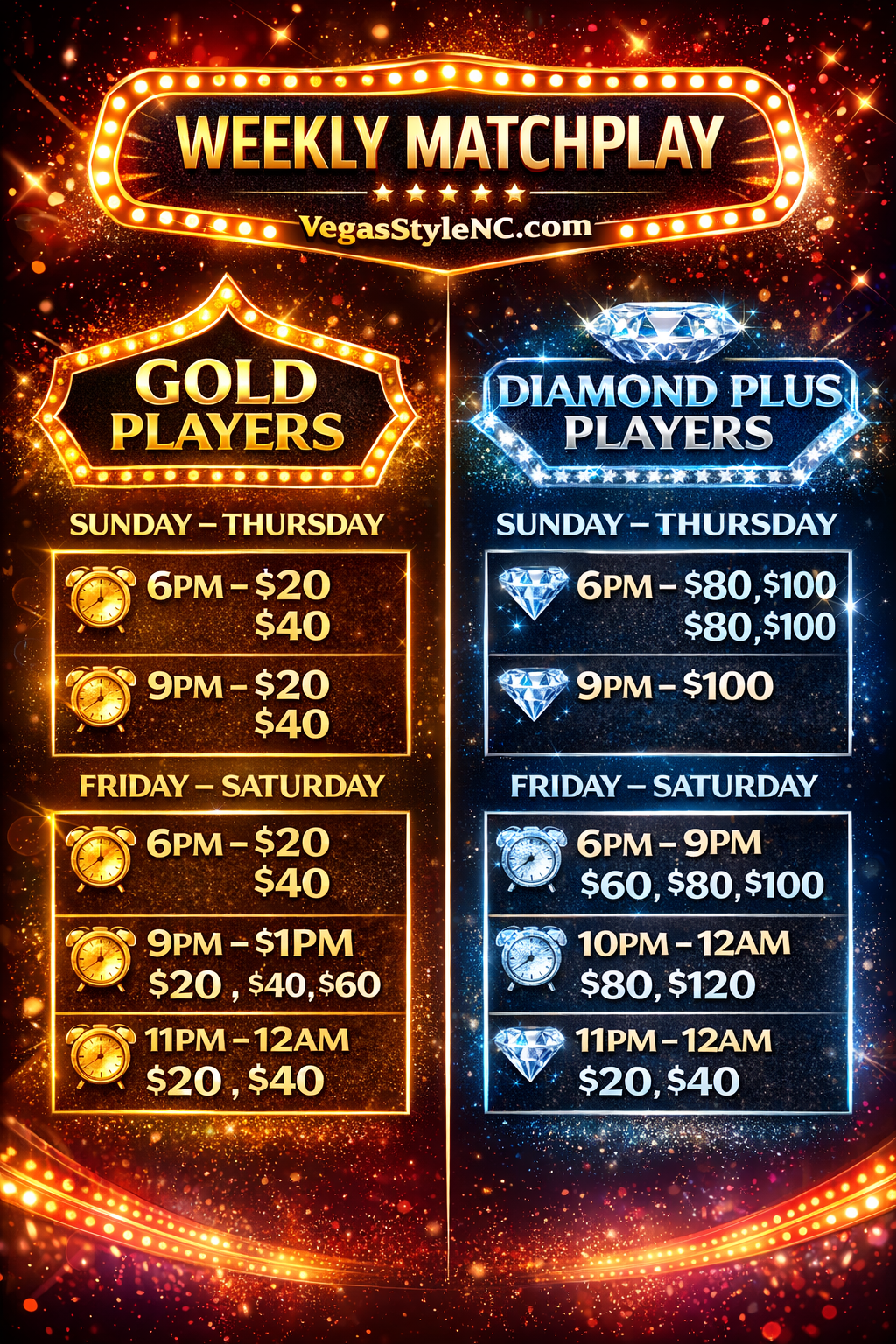 It is easy to become a Vegas-Style Rewards member. Go to our Rewards tab and sign up now. You will begin receiving perks within 48 hours.